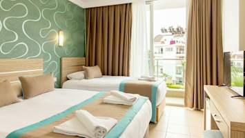 Side Löwe Hotel är ett modernt designat All Inclusive-hotell med uppskattad personal och fräscha rum. Hotellet är byggt runt ett rymligt och ljust poolområde, med gott om plats på de mjuka gräsmattorna. Vill du hellre bada i havet har hotellet en egen del av stranden, med busstransport flera gånger om dagen. För extra avkoppling kan du besöka hotellet hamam där du blir väl omhändertagen.