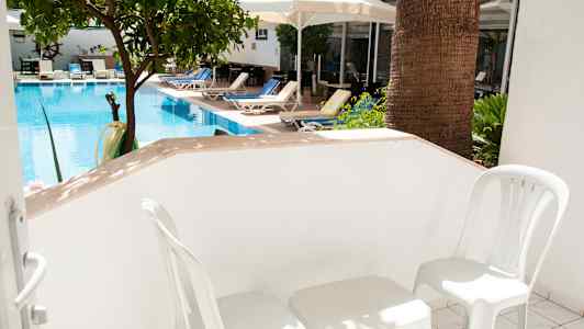 Poolområdet erbjuder en stor pool och en barnpool, omgivet av solterrasser med solstolar och parasoll, och nere vid stranden har hotellet en privat del med solstolar och parasoller för hotellets gäster. På hotellet finns två barer och en restaurang som är öppen för frukost, lunch och middag. Frukostbuffé ingår i priset, för att varje morgon ska börja på bästa sätt.