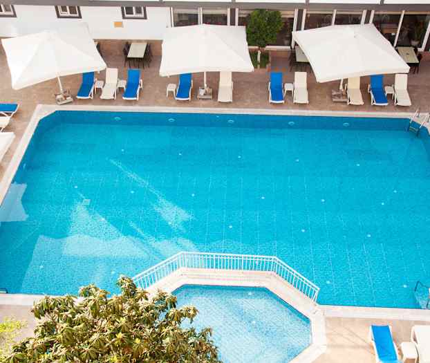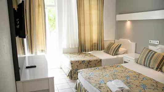 Side Spring Hotel har ett fint poolområde och ett lugnt läge ett stycke från stranden strax väster om de äldre delarna av Side. Här får du mycket semester för pengarna, och du kan välja att boka ett dubblettrum med plats för upp till sju personer.