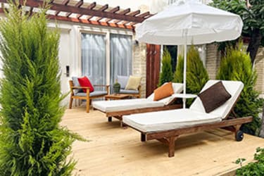 Mysiga och fina sviter där du kan sitta utomhus och njuta av ljumma och sköna kvällar i komfortabla loungemöbler.