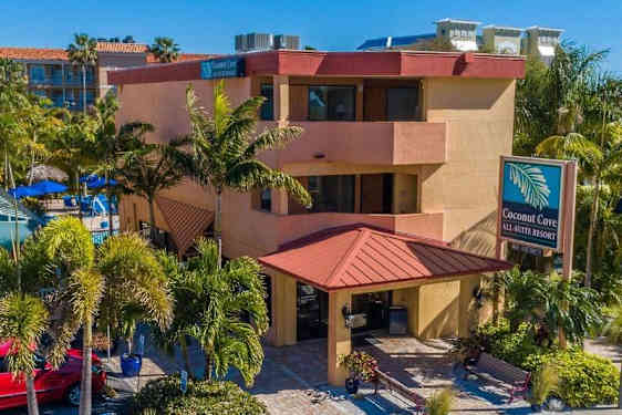 The Coconut Cove är ett hotell med enbart sviter, beläget vid den södra änden av Clearwater Beach, nära Sand Key. Hotellet har ett idealiskt läge nära shopping, restauranger, barer och en mängd olika fritids- och nöjesaktiviteter. Det ligger inom en kilometer från några av Floridas topprankade stränder, där gästerna kan njuta av ett brett utbud av vattensporter. Buss- och tågförbindelser finns också i närheten. Varje svit har ett fullt utrustat kök och rymliga sovrum. Under din vistelse hos oss kan du njuta av vår lyxiga pool, vår delvis privata strand (150 meter från hotellet) och service i toppklass. Oavsett om du stannar en kortare eller längre tid är vårt svit-hotell perfekt för en familjesemester eller affärsresa.