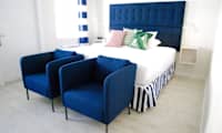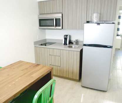 I rummens utrustning ingår WiFi, TV, kassafack, kylskåp, kaffe/te-bryggare, matplats och