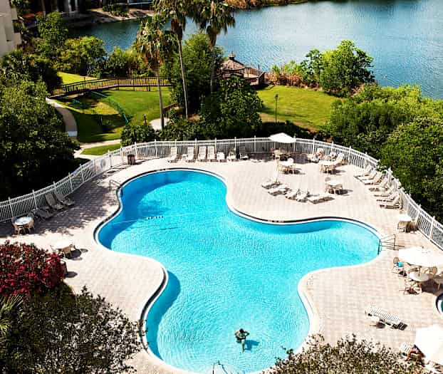 The Enclave Hotel & Suites är ett enkelt hotell med bra, centralt läge nära International Drive. Hotellet består av tre byggnader med omgivande små trädgårdar och en liten sjö. På hotellet finns ett poolområde och faciliteter som restaurang, gym och tennisbana. Från hotellet tar det cirka 10-15 minuter med bil till Universal Studios och Disney World.