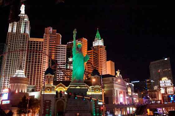 Hotell New York New York återskapar amerikansk östkustkänsla i den södra delen av Las Vegas The Strip. Här bor du i en skyskrapa, som på Manhattan med Frihetsgudinnan (46 m hög!) utanför fönstret. Kasinot ligger i Central Park och berg-och-dalbanan på Coney Island – "only in Las Vegas"!