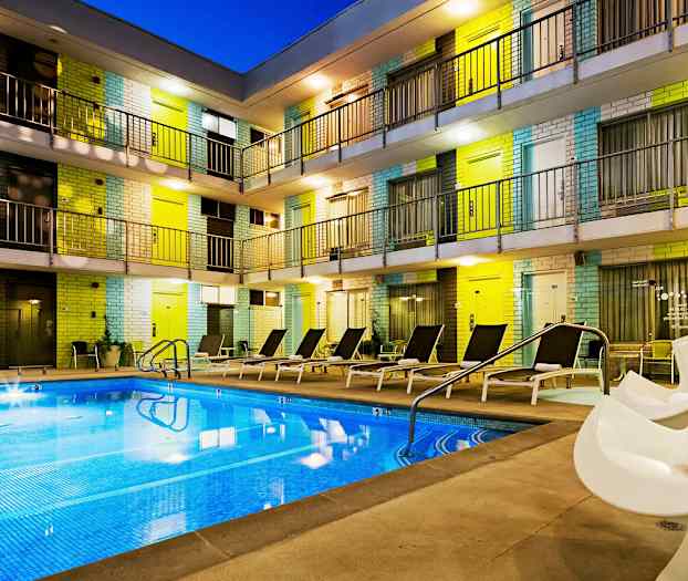 The Hollywood Franklin Hotel near Universal Studios ligger i nöjesfyllda Hollywood. Här bor du på bekvämt avstånd till flera sevärdheter, shopping och nöjen i Los Angeles. Från hotellet är det cirka två kilometer till den berömda Hollywood Walk of Fame och Dolby Theatre, den välkända platsen för den årliga Oscarsgalan. The Hollywood Franklin Hotel near Universal Studios är ett enkelt hotell med bekväma rum, och i hotellbyggnaden finns en populär restaurang där amerikanska rätter serveras hela dagen. På hotellet finns även ett litet poolområde med solstolar där du kan svalka dig under varma sommardagar.