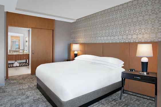 Njut av fantastisk utsikt över bukten och staden från våra nyrenoverade gästrum, autentiskt designade med San Diego i åtanke. Vårt hotell, som är bekvämt beläget intill San Diego Convention Center, ligger mittemot Petco Park och det livliga Gaslamp Quarter. Koppla av i våra fritidsfaciliteter, anordna evenemang i våra omfattande mötesutrymmen och njut av unika matupplevelser. Stora fönster visar en hisnande utsikt över San Diego Bay och stadens silhuett. Bekvämligheter inkluderar Wi-Fi, bekväma Hilton Serenity-sängar och HDTV. Uppgradera till en rymlig svit för en separat vardagsrumsdel och förbättrade bekvämligheter. Utforska närliggande attraktioner som det livliga Gaslamp Quarter, hem till fantastisk shopping, restauranger och nattliv. Familjevänliga attraktioner som Legoland®, San Diego Zoo och Birch Aquarium är lättillgängliga. Den dagliga obligatoriska avgiften för resmål i staden som läggs till rumspriset inkluderar premiuminternet, en kredit på 35 USD för mat och dryck som gäller på Vela, Odysea, Pool Club och för middagar på rummet, samt en 1-timmars cykel-, kajak- eller paddleboarduthyrning.
