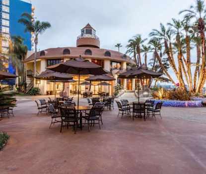 egen balkong eller uteplats, gratis Wi-Fi och LCD-TV. De privata badrummen har badkar/dusch, designertoalettartiklar och hårtork. Bekvämligheterna inkluderar tre restauranger på plats (inklusive Hazelwood's Bayside Deli och en bar/lounge), en uppvärmd utomhuspool, ett fitnesscenter, ett businesscenter, mötesrum och gratis flygplatstransfer (vid schemalagda tider). Ytterligare bekvämligheter inkluderar concierge-tjänster, en presentbutik, cykeluthyrning och en komplett frukost (avgift tillkommer). Närliggande attraktioner inkluderar Waterfront Park, Port of San Diego, Maritime Museum of San Diego, Seaport Village med flera. Närmaste flygplats är San Diego Intl. Flygplats (SAN).