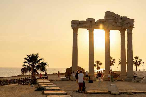Vi tar oss sedan ner till de äldre delarna av Side och får en guidad rundvandring bland stadens antika monument och lämningar: den gamla huvudgatan kantad av butiker, agoran, amfiteatern och vidare ner mot Apollontemplet. Därifrån är det inte långt till hamnen med alla frestande restauranger, och vi tar oss hit för att njuta av utsikten.