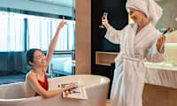 Gästrummen på 38 m² har luftkonditionering, WiFi, TV, telefon, kassafack, minibar (mot avgift) och badrum.